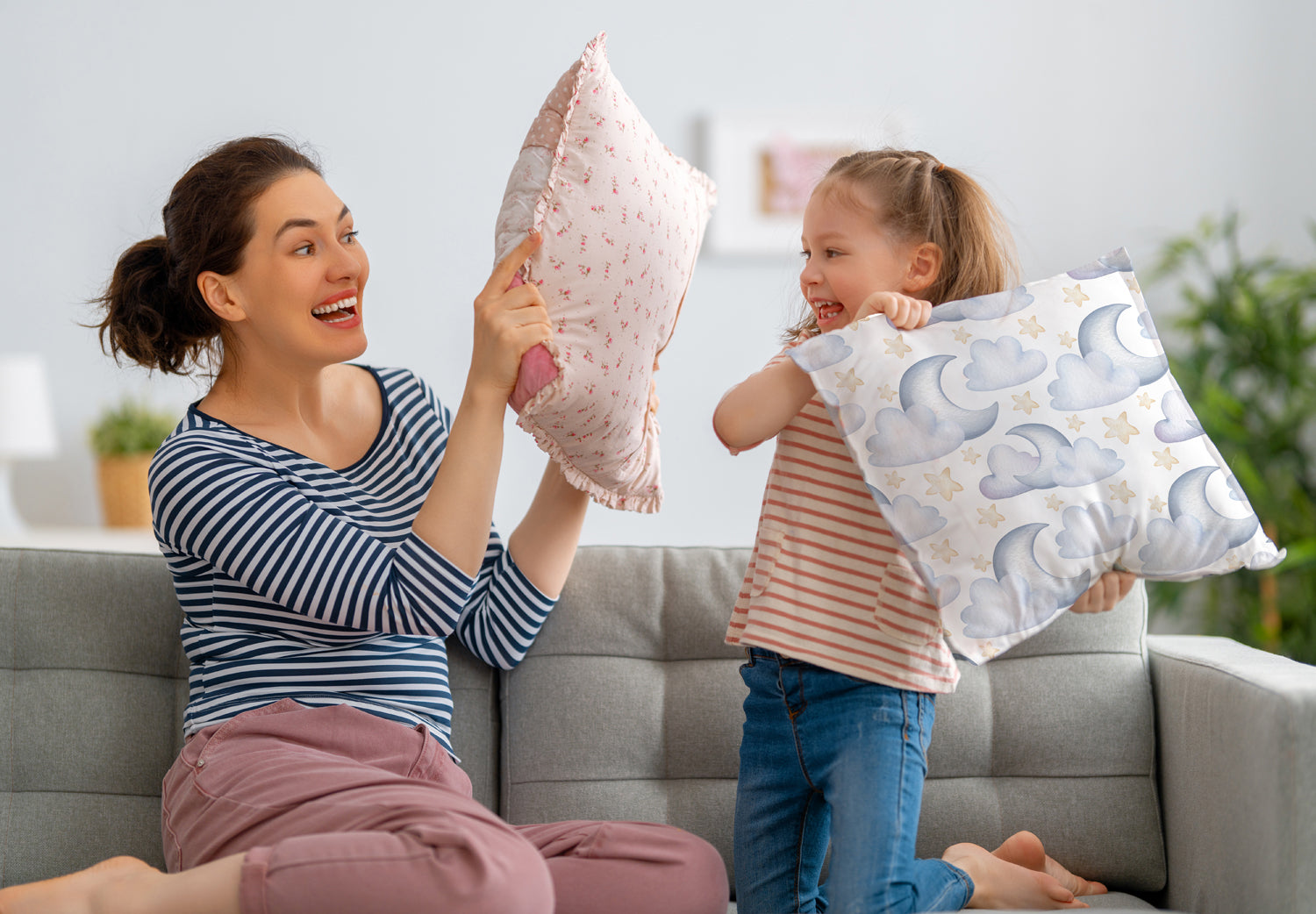 Fabriquées dans un tissu doux et de haute qualité, les housses sont non seulement particulièrement agréables sur la peau, mais également faciles à entretenir et durables – idéales pour la vie quotidienne trépidante avec les enfants. Grâce à la fermeture éclair pratique, ils peuvent être changés et lavés sans effort.
